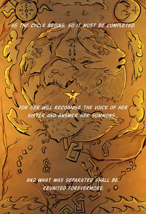 We wanted the isekai elements to be baked into the actual world’s mythology: Originally, the World was one planet, but during creation was split into two pieces by the rulers of Chaos (the main antagonists of the setting). The larger piece, Aeda, became Earth, while the smaller, Ser, became victim to Chaos’ whims.